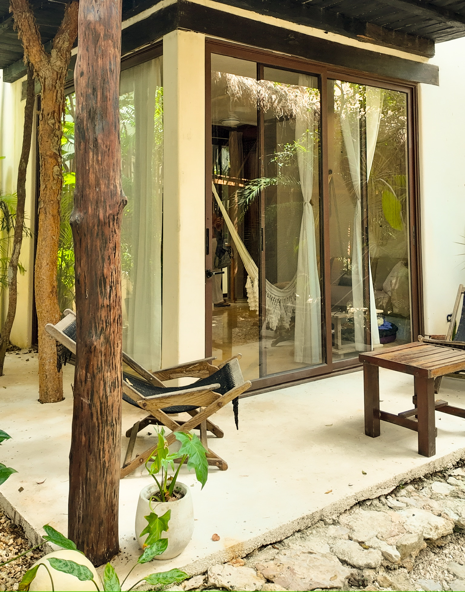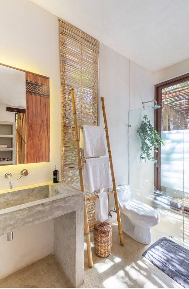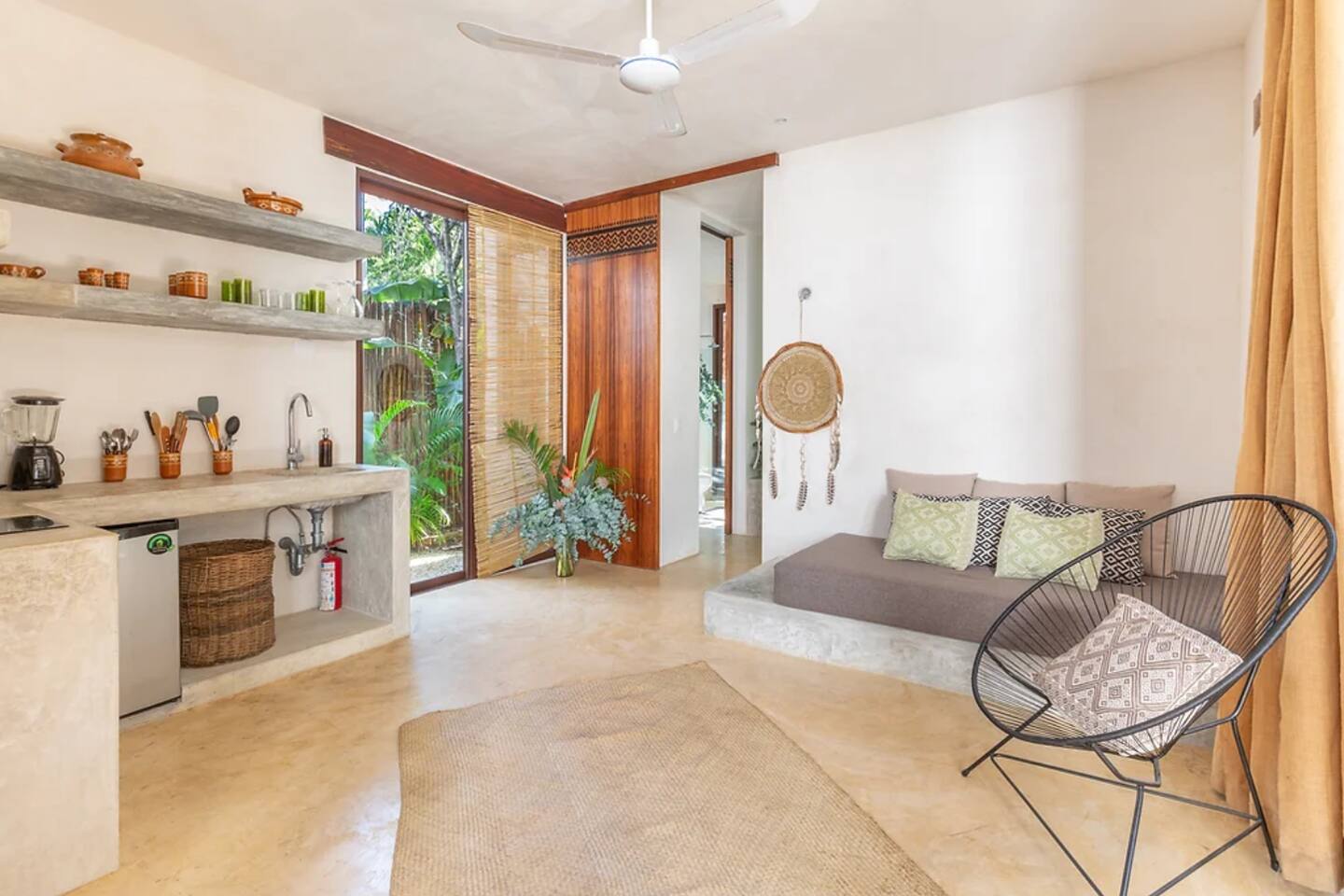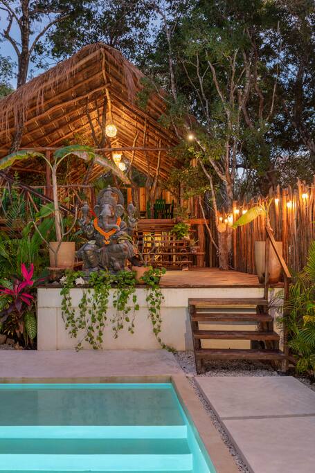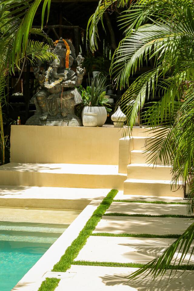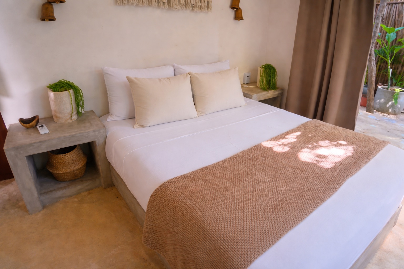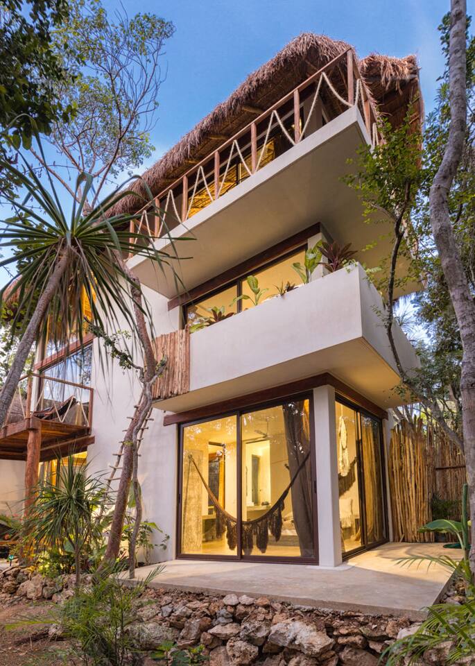 PLEASE READ FULLY THE LISTING DESCRIPTION AND "THE SPACE" AND VIEW ALL LISTING PHOTOS BEFORE BOOKING: Experience the essence of Tulum living and the perfect vacation getaway. XEL is designed in the local minimalist style with polished concrete floors and built in furniture. Featuring floor to ceiling windows in living room and bedroom, with views of our lush jungle garden. Fully equipped kitchen, stunning bathroom with shower and private outdoor garden bathtub. Private backyard and two wrap around terraces are the perfect place to enjoy your morning coffee. All interior decor is locally made by Mayan artisans giving IKAL it's authentic Tulum vibe. The property has a shared swimming pool, Yoga Shala, and garden area with the two other bungalows on property, featuring a beautiful hard wood staircase leading to separate paths to each private bungalow. Things to be aware and consider before you book: - We have full time security on site at all times - The 2nd bed is the day bed pictured in the listing photos. We provide sheets, pillows, and blanket and it converts to a very comfortable twin size mattress - We are located in the jungle in the newest part of Tulum town. The newly opened beach road, Kukulcan, is right around the corner and will bring you to the beach in 12 minutes by car or 25 by bike. - The road to our property is a dirt road and sometimes has bumps and holes due to rain and ongoing construction. The road is very manageable with any type of car, moped, or bike, and only adds to the adventure! :) -Renting a car is recommended but we have several taxi services. The taxis in Tulum are expensive, so we always recommend renting a car or moped. -We have Air Conditioners in each bedroom which are intended to cool our guests while they are sleeping, not to cool the entire apartment. We have designed the apartment to cool with fans and natural airflow through the palapa style roof, not by running the AC full blast all day. This was by design to minimize our impact on the world and meet our sustainability values and goals. - We have high speed fiber optic wifi at 50 mbps, but at times can be spotty due to wind and /or technical issues with the main tower, which we can not control. the majority of the time it works perfectly fine - The magical city of Tulum is very popular and in constant development due to its current demand. The entire town is under construction in every neighborhood and therefore, there is sometimes construction noise from simple hammers to power tools. Construction around the city happens from 9 am - 4 pm Monday - Friday - the outdoor garden tub gets luke-warm, not super hot - Tulum experiences occasional power outages due to development. When the power is out, there is no access to running water, lights, wifi, or AC. These outages last usually from 1 - 2 hours and are out of our control. - chef is not included in airbnb price ***We do not offer refunds for any of the listed above. Please consider before you book***