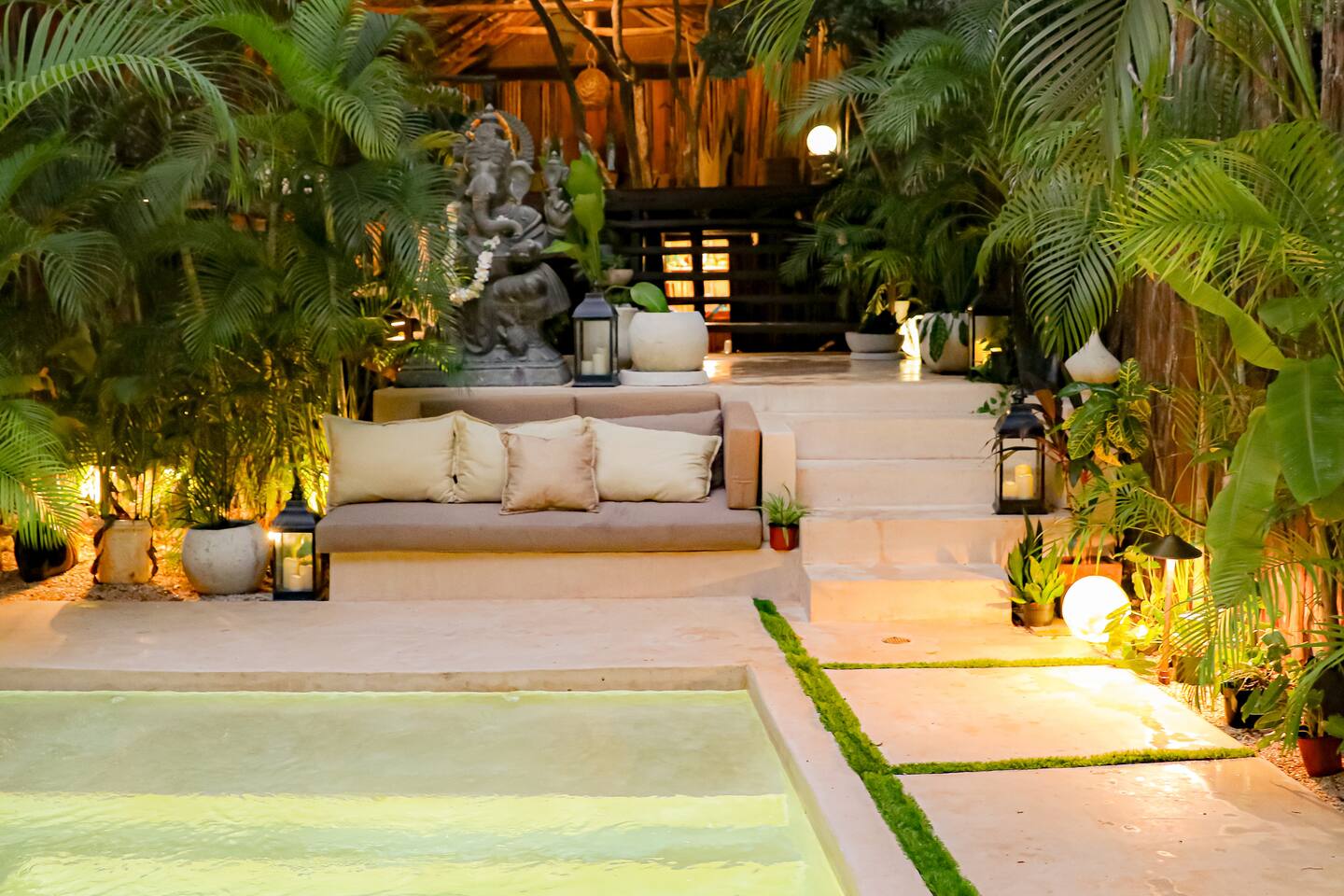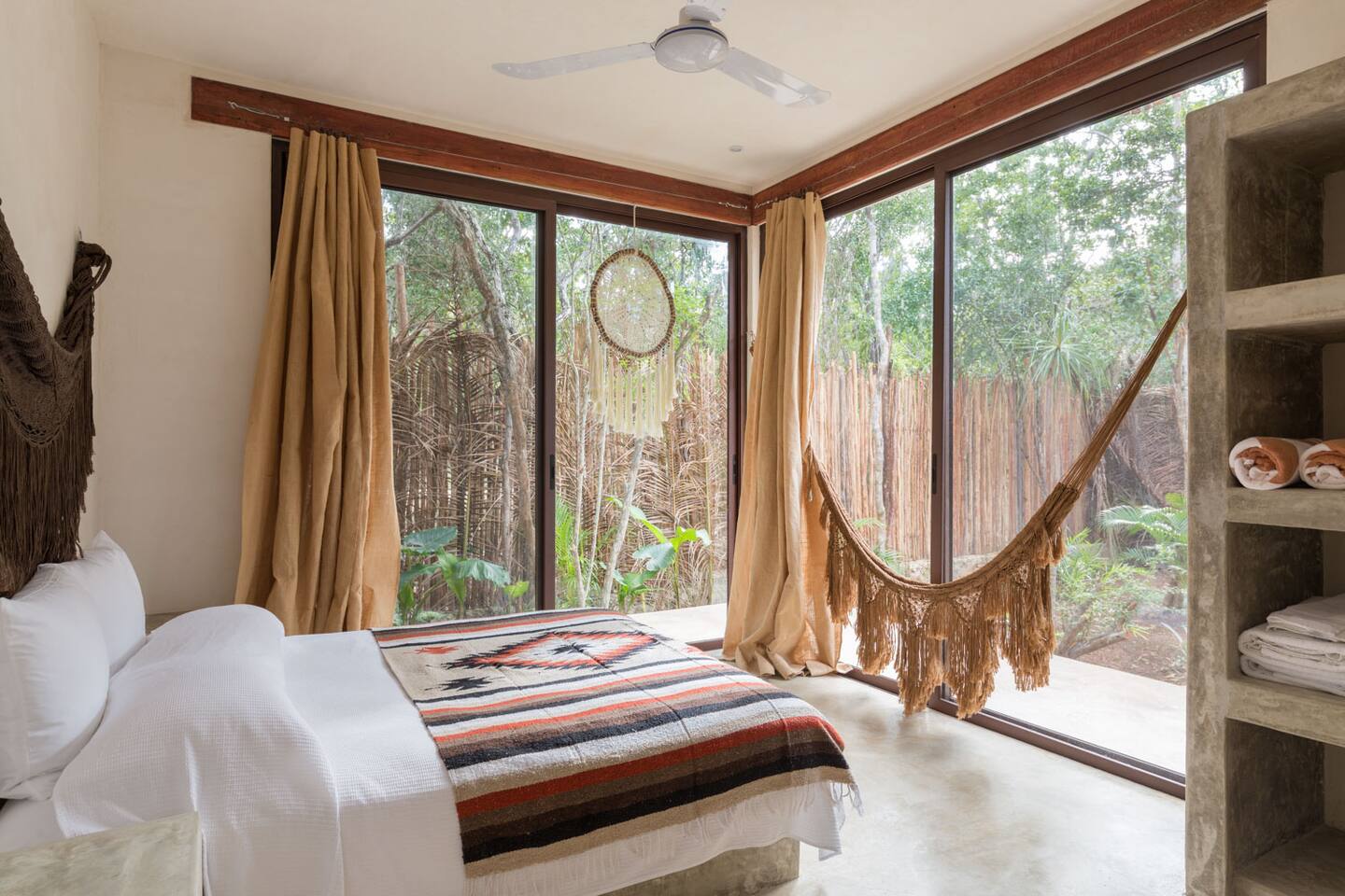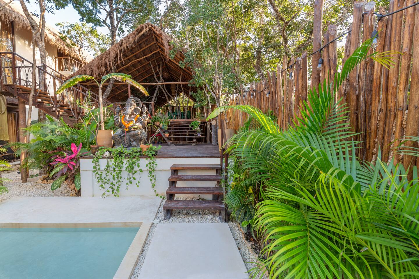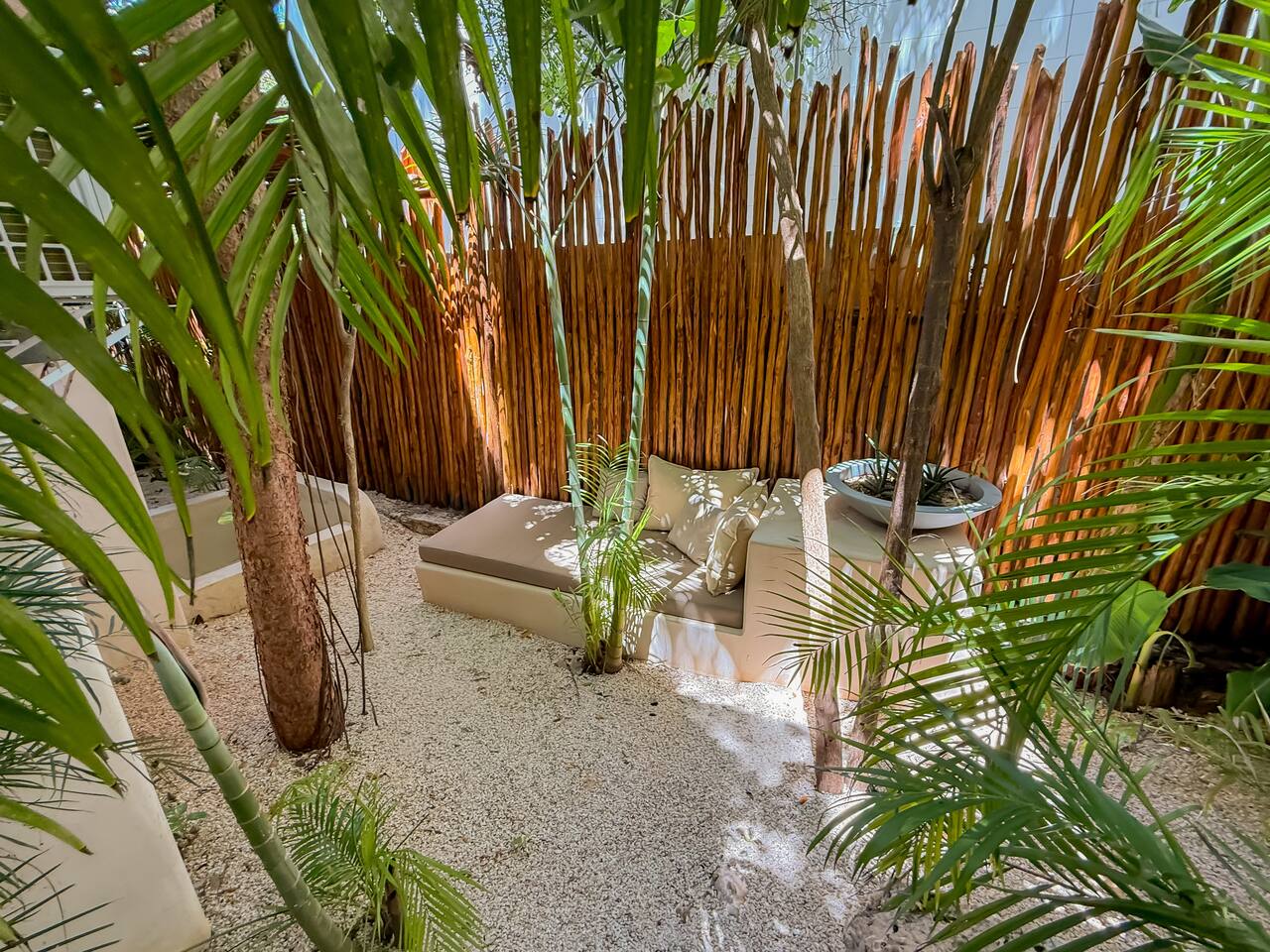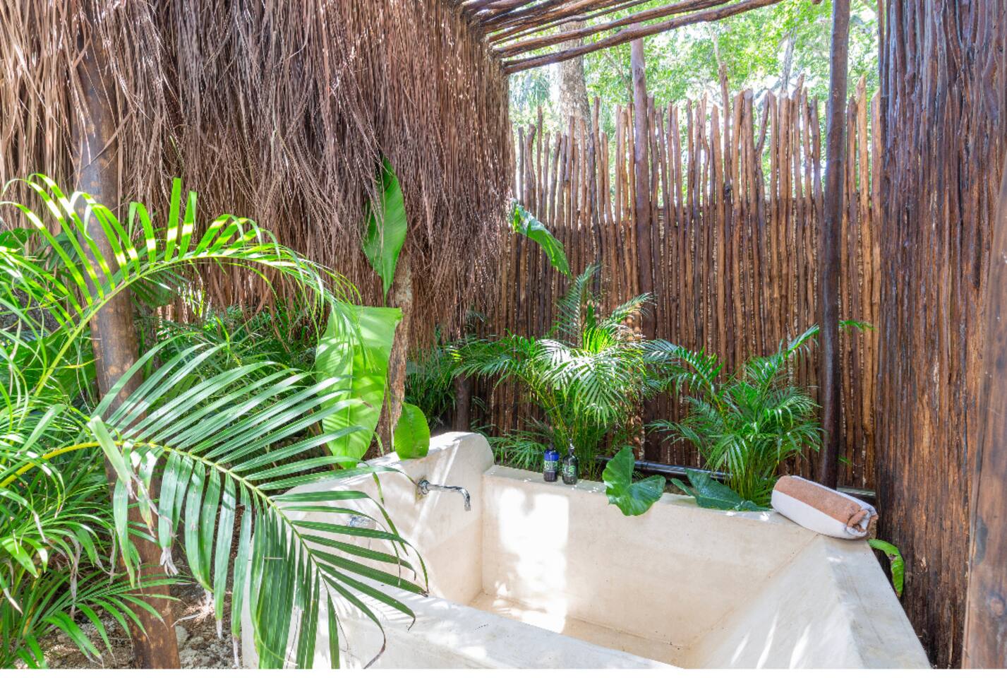 PLEASE READ FULLY THE LISTING DESCRIPTION AND "THE SPACE" AND VIEW ALL LISTING PHOTOS BEFORE BOOKING: Experience the essence of Tulum living and the perfect vacation getaway. XEL is designed in the local minimalist style with polished concrete floors and built in furniture. Featuring floor to ceiling windows in living room and bedroom, with views of our lush jungle garden. Fully equipped kitchen, stunning bathroom with shower and private outdoor garden bathtub. Private backyard and two wrap around terraces are the perfect place to enjoy your morning coffee. All interior decor is locally made by Mayan artisans giving IKAL it's authentic Tulum vibe. The property has a shared swimming pool, Yoga Shala, and garden area with the two other bungalows on property, featuring a beautiful hard wood staircase leading to separate paths to each private bungalow. Things to be aware and consider before you book: - We have full time security on site at all times - The 2nd bed is the day bed pictured in the listing photos. We provide sheets, pillows, and blanket and it converts to a very comfortable twin size mattress - We are located in the jungle in the newest part of Tulum town. The newly opened beach road, Kukulcan, is right around the corner and will bring you to the beach in 12 minutes by car or 25 by bike. - The road to our property is a dirt road and sometimes has bumps and holes due to rain and ongoing construction. The road is very manageable with any type of car, moped, or bike, and only adds to the adventure! :) -Renting a car is recommended but we have several taxi services. The taxis in Tulum are expensive, so we always recommend renting a car or moped. -We have Air Conditioners in each bedroom which are intended to cool our guests while they are sleeping, not to cool the entire apartment. We have designed the apartment to cool with fans and natural airflow through the palapa style roof, not by running the AC full blast all day. This was by design to minimize our impact on the world and meet our sustainability values and goals. - We have high speed fiber optic wifi at 50 mbps, but at times can be spotty due to wind and /or technical issues with the main tower, which we can not control. the majority of the time it works perfectly fine - The magical city of Tulum is very popular and in constant development due to its current demand. The entire town is under construction in every neighborhood and therefore, there is sometimes construction noise from simple hammers to power tools. Construction around the city happens from 9 am - 4 pm Monday - Friday - the outdoor garden tub gets luke-warm, not super hot - Tulum experiences occasional power outages due to development. When the power is out, there is no access to running water, lights, wifi, or AC. These outages last usually from 1 - 2 hours and are out of our control. - chef is not included in airbnb price ***We do not offer refunds for any of the listed above. Please consider before you book***
