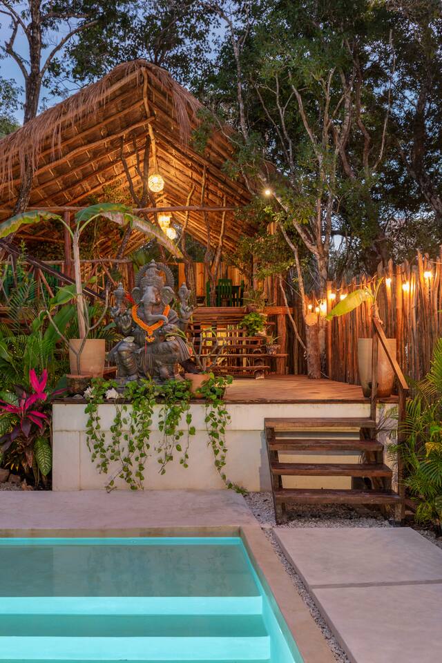 PLEASE READ FULLY THE LISTING DESCRIPTION AND "THE SPACE" AND VIEW ALL LISTING PHOTOS BEFORE BOOKING: XEL is part of IKAL BUNGALOWS, lush private garden level apartment, located within the newly developing jungle area, La Valeta, near downtown TULUM. Our name IKAL meaning "Spirit" & XEL meaning "Rainbow". We honor the MAYAN land and culture. Fully equipped private apartment with all the services and commodities for those who wish to experience life surrounded by TULUM's beautiful nature.